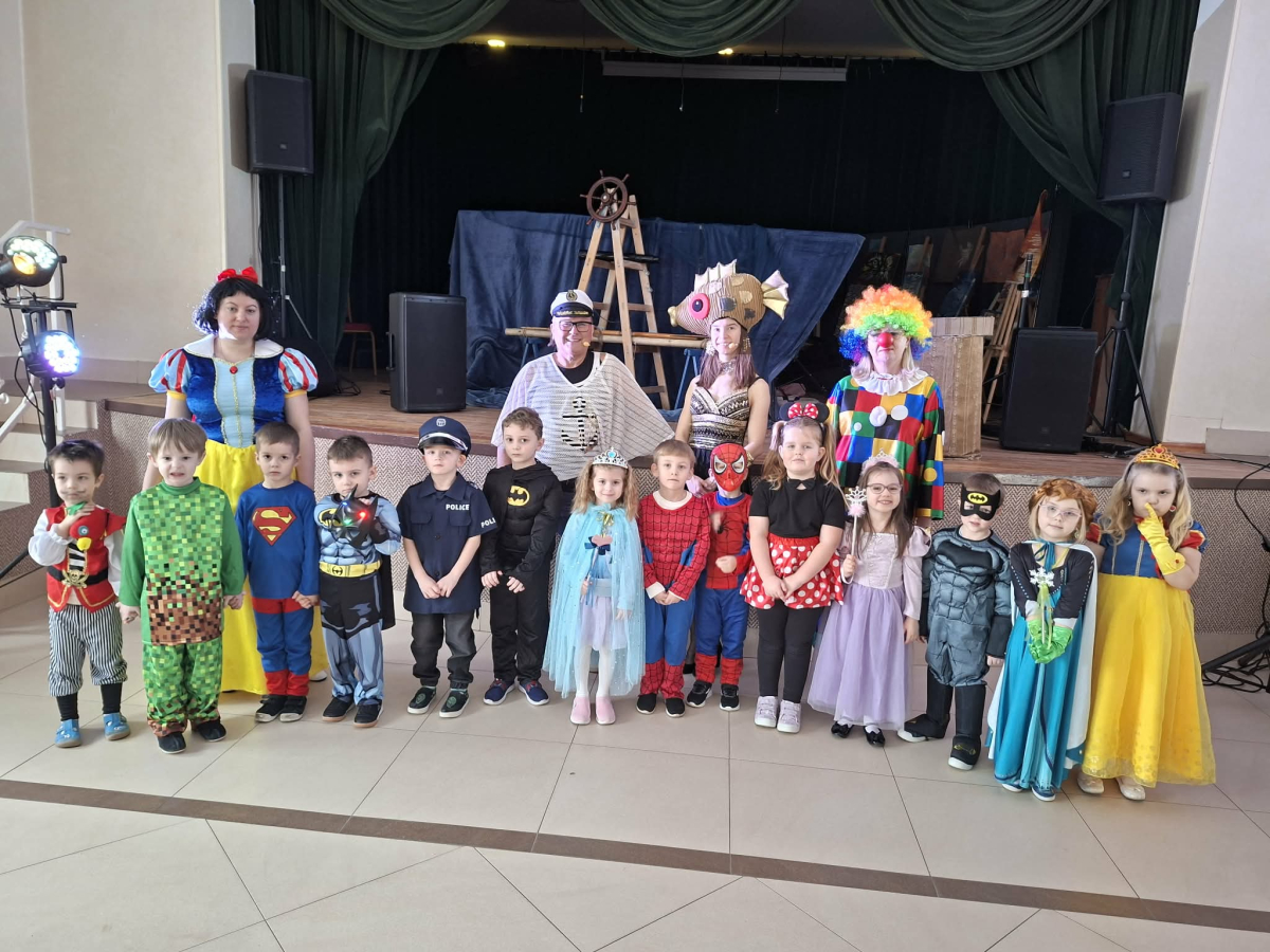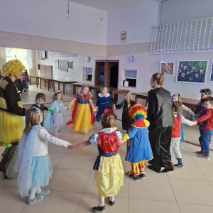 28 stycznia w naszym przedszkolu odbył się bal karnawałowy poprzedzony przedstawieniem "Trzy życzenia złotej rybki" w wykonaniu aktorów z teatru "Vaśka" z Torunia. Karnawał to miła tradycja, przepełniona muzyką i zabawą. Na balu karnawałowym dzieci wcieliły się w różne postacie bajkowe. Przedszkolaki zamieniły się w królewny, księżniczki, wróżki, biedronki, Batmanów, piratów, skrzatów, rycerzy czy policjantów. Skoczna i rytmiczna muzyka zachęcała do tańca. Wszystkim zabawom towarzyszyła radość, śmiech i spontaniczna aktywność dzieci. Cały bal karnawałowy przebiegł w miłej, serdecznej atmosferze i dostarczył niezapomnianych wrażeń.