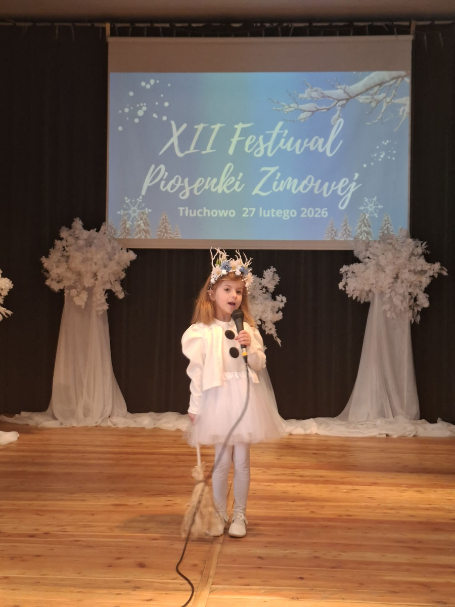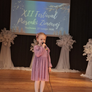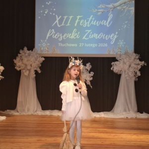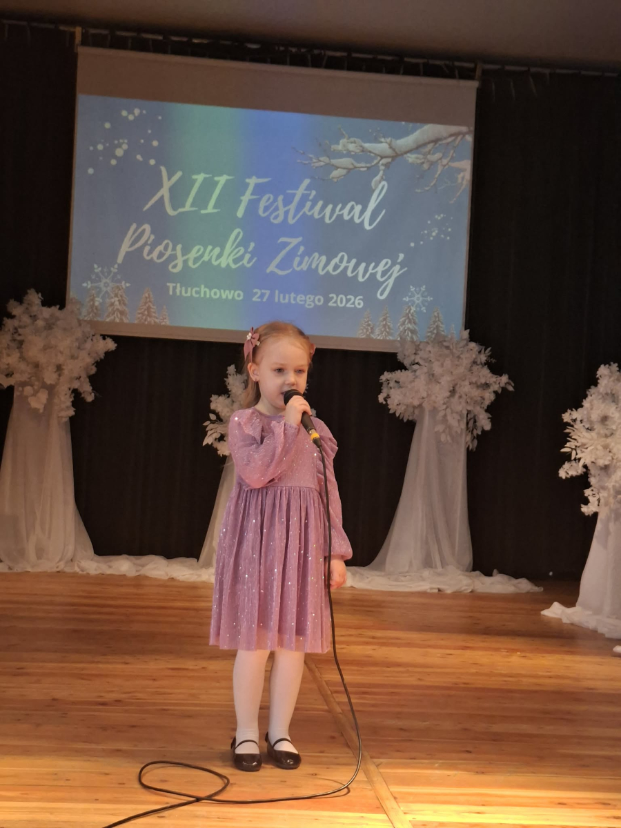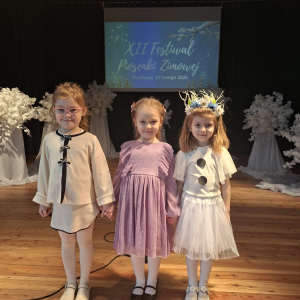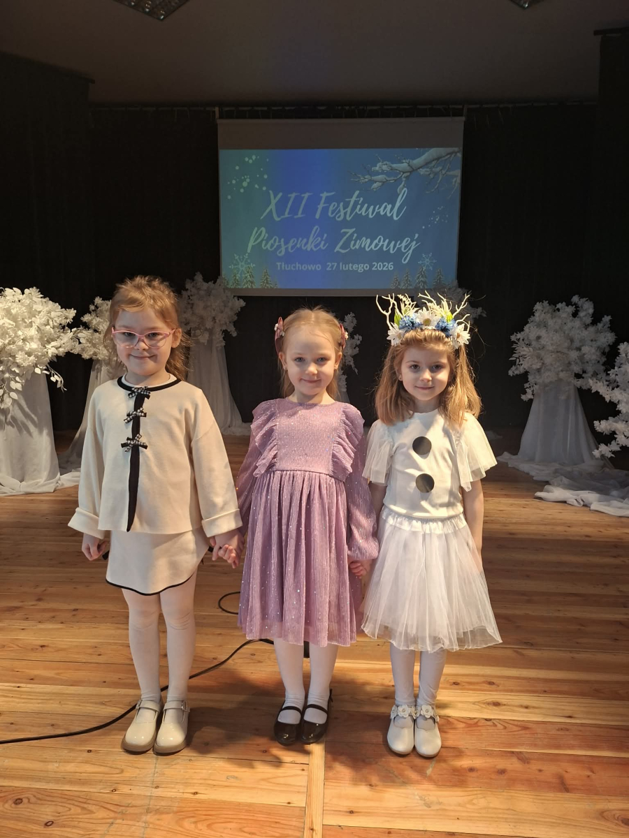 W piątek 27 lutego w Gminnym Ośrodku Kultury w Tłuchowie odbył się XII Festiwal Piosenki Zimowej. Nasze przedszkole reprezentowały dziewczynki z grupy Puchatki: Maria Mólczyńska i Marcelina Koprowicz oraz Laura Kosztowna z gr. Krasnale, w kategorii wiekowej do lat 7. I miejsce - Laura Kosztowna III miejsce- Marcelinka Koprowicz. Gratulacje dla dziewczynek i rodziców, życzymy dalszych sukcesów wokalnych.