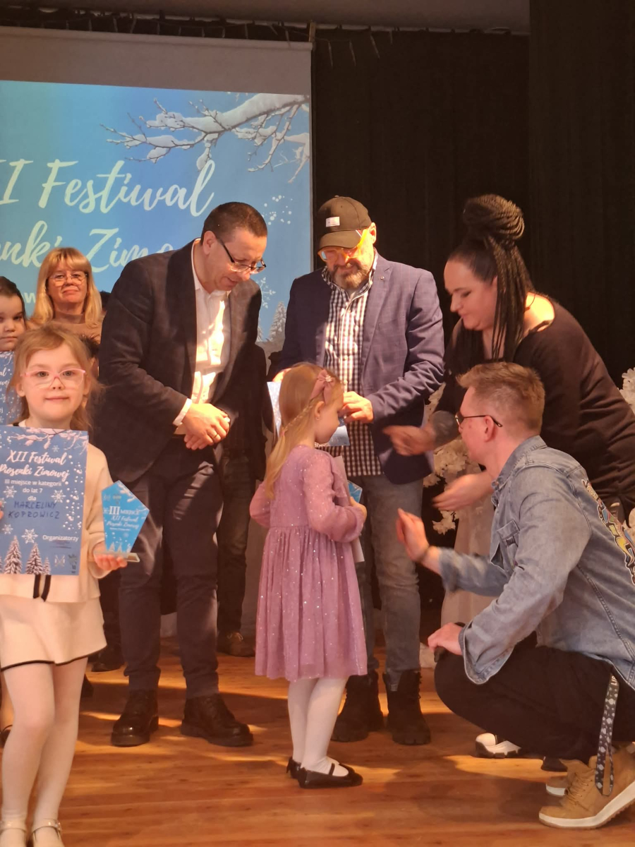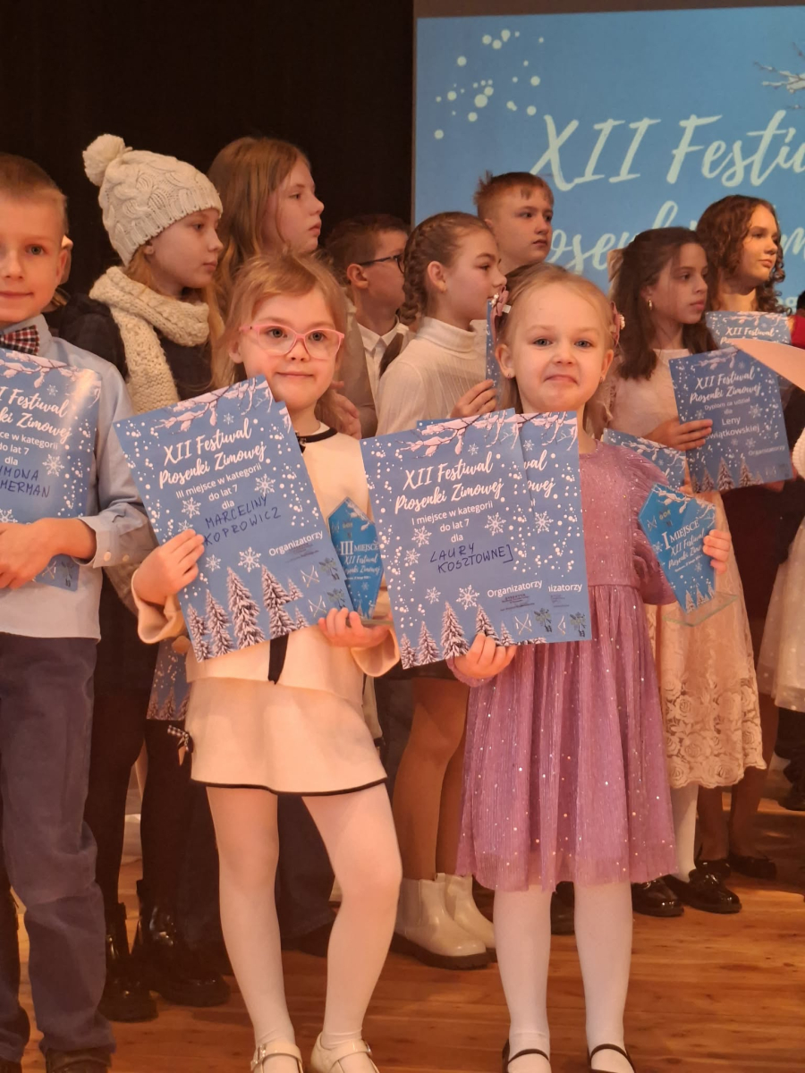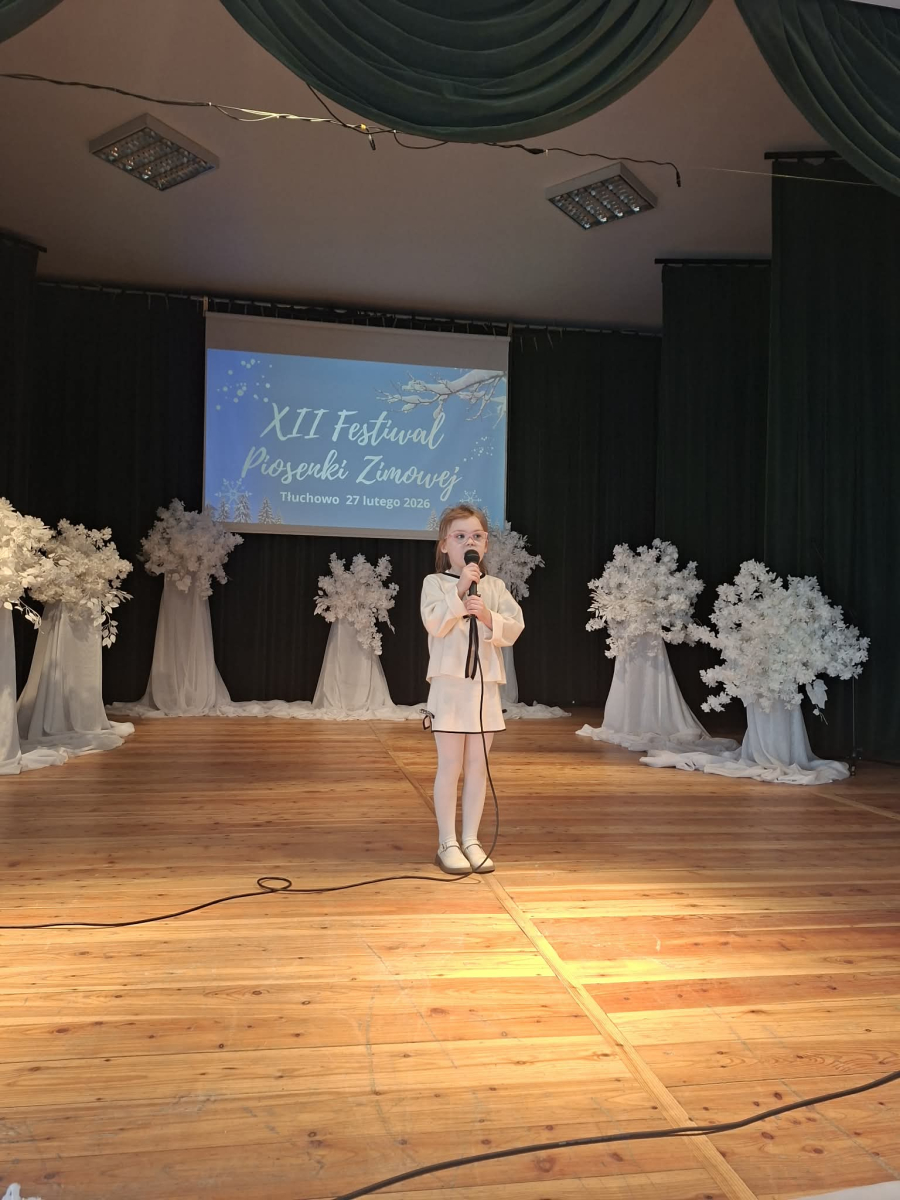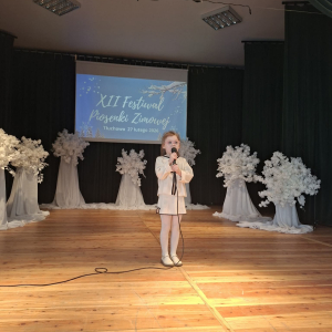W piątek 27 lutego w Gminnym Ośrodku Kultury w Tłuchowie odbył się XII Festiwal Piosenki Zimowej. Nasze przedszkole reprezentowały dziewczynki z grupy Puchatki: Maria Mólczyńska i Marcelina Koprowicz oraz Laura Kosztowna z gr. Krasnale, w kategorii wiekowej do lat 7. I miejsce - Laura Kosztowna III miejsce- Marcelinka Koprowicz. Gratulacje dla dziewczynek i rodziców, życzymy dalszych sukcesów wokalnych.