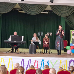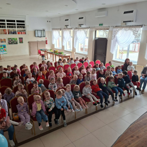 Po raz kolejny gościliśmy muzyków z Filharmonii Pomorskiej, tym razem na marcowy koncercie zwiastującym wiosnę. Dźwiękami instrumentów dętych drewnianych naśladowaliśmy nie tylko wesołe ptasie trele, ale też ich dźwięczne kłótnie. Wsłuchując się w wiosenne brzmienia muzyki takich twórców jak Antonio Vivaldi czy Johann Strauss wyszukiwaliśmy dźwięków kojarzących się z najradośniejszą porą roku. Podczas koncertu wspólnie śpiewaliśmy piosenki zapowiadające wiosnę.