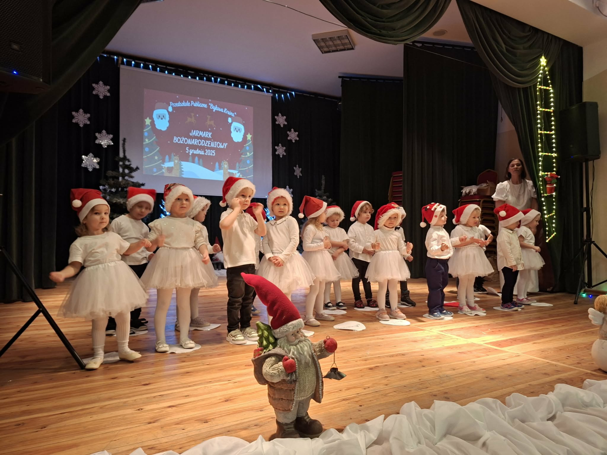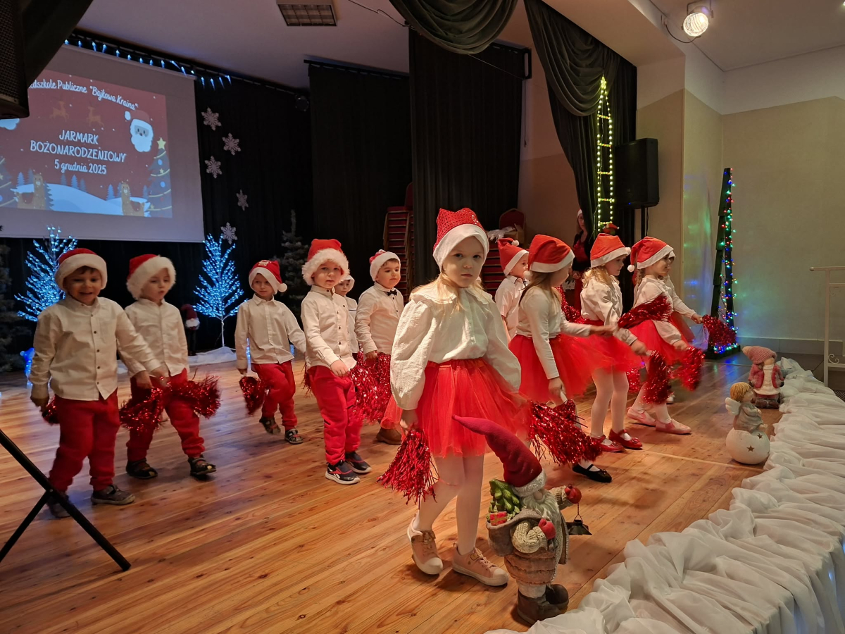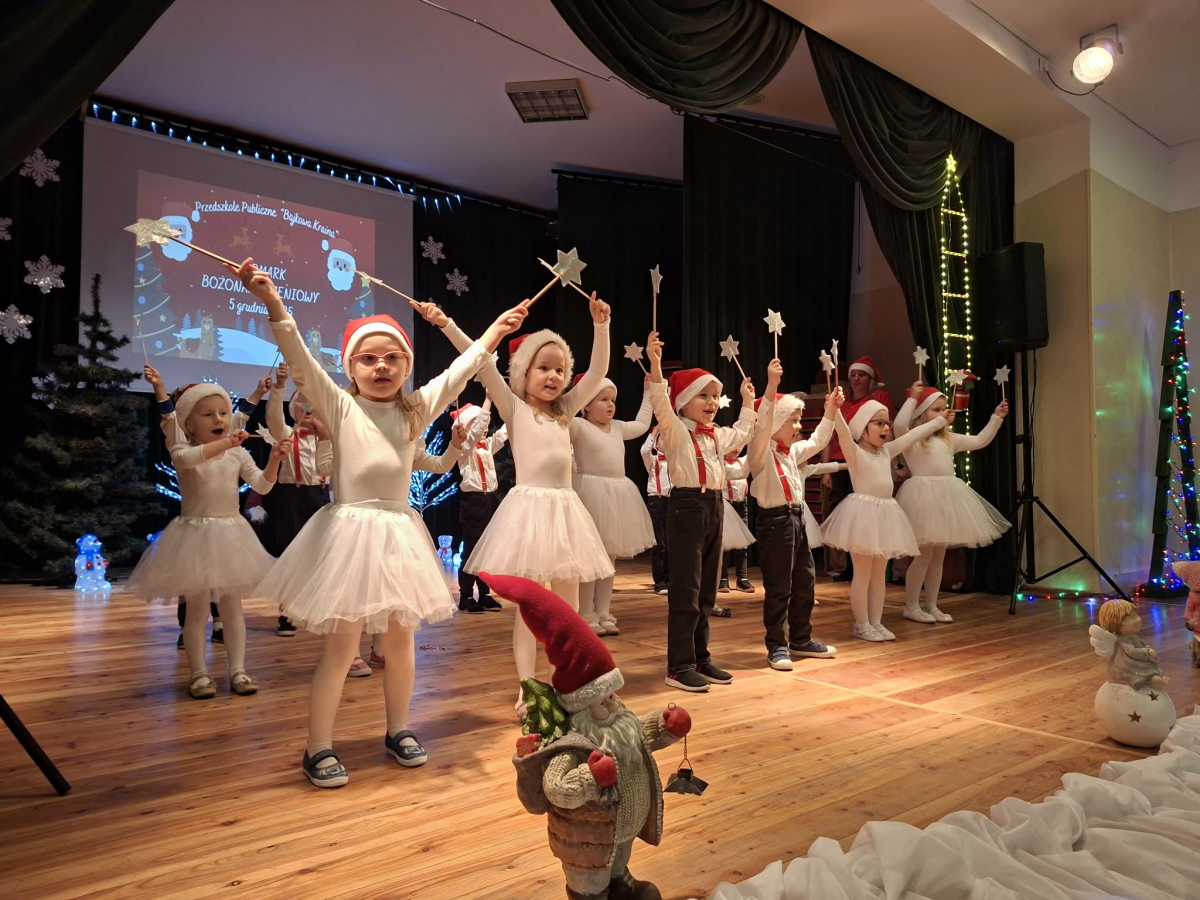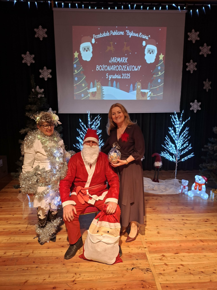 5 grudnia w Gminnym Ośrodku Kultury, już po raz czwarty odbył się Jarmark Bożonarodzeniowy zorganizowanym przez Radę Rodziców naszego przedszkola. Blask lampek, świąteczne piosenki oraz występy naszych przedszkolaków stworzyły prawdziwą magię zbliżającego się wielkimi krokami Bożego Narodzenia. Podczas jarmarku sprzedawane były ozdoby świąteczne i pyszne ciasta upieczone przez rodziców. Takie przedsięwzięcie mogliśmy zoorganizować dzięki współpracy rodziców i pracowników przedszkola. Tego dnia odwiedził nas wyjątkowy gość wyczekiwany przez wszystkie dzieci Święty Mikołaj. Serdecznie dziękujemy wszystkim zaangażowanym rodzicom za pomoc, poświęcony czas i wsparcie.