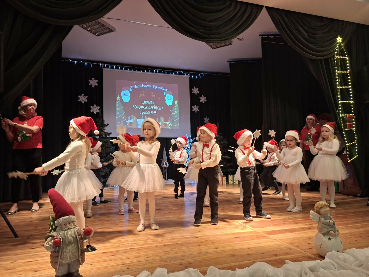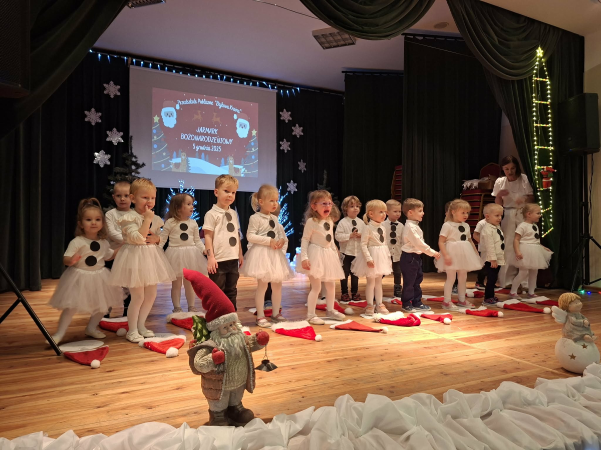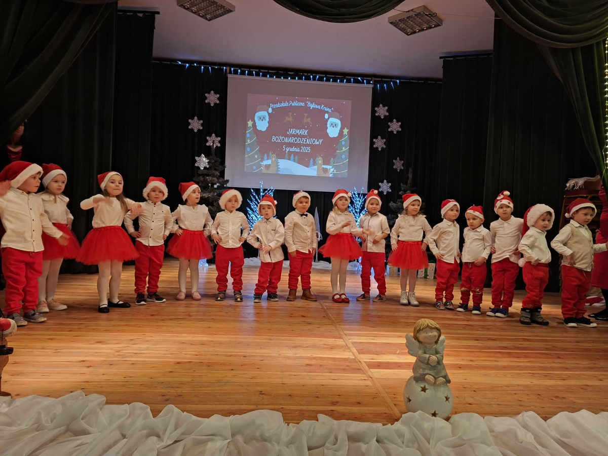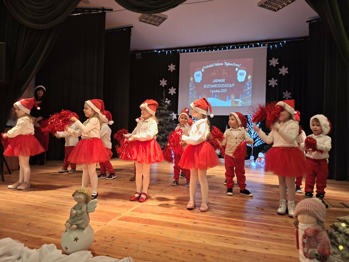 5 grudnia w Gminnym Ośrodku Kultury, już po raz czwarty odbył się Jarmark Bożonarodzeniowy zorganizowanym przez Radę Rodziców naszego przedszkola. Blask lampek, świąteczne piosenki oraz występy naszych przedszkolaków stworzyły prawdziwą magię zbliżającego się wielkimi krokami Bożego Narodzenia. Podczas jarmarku sprzedawane były ozdoby świąteczne i pyszne ciasta upieczone przez rodziców. Takie przedsięwzięcie mogliśmy zoorganizować dzięki współpracy rodziców i pracowników przedszkola. Tego dnia odwiedził nas wyjątkowy gość wyczekiwany przez wszystkie dzieci Święty Mikołaj. Serdecznie dziękujemy wszystkim zaangażowanym rodzicom za pomoc, poświęcony czas i wsparcie.