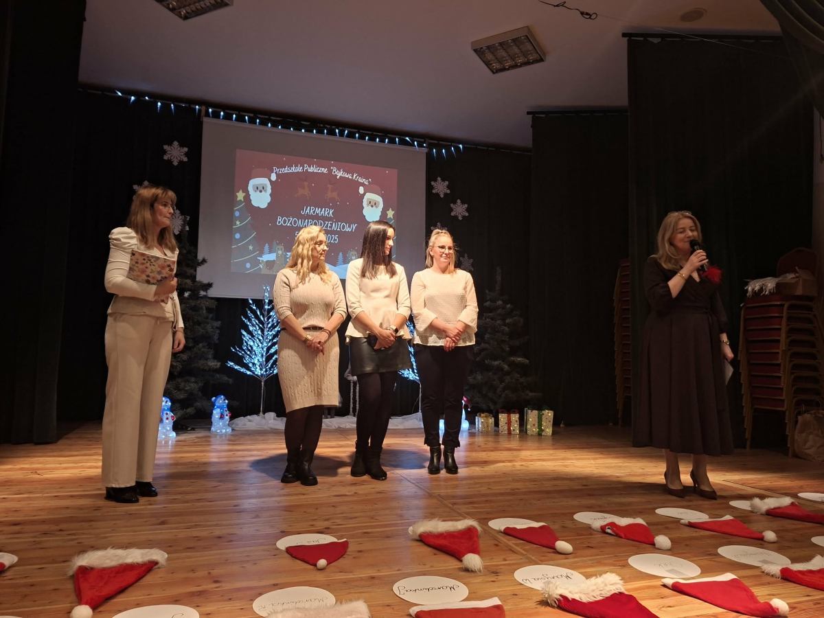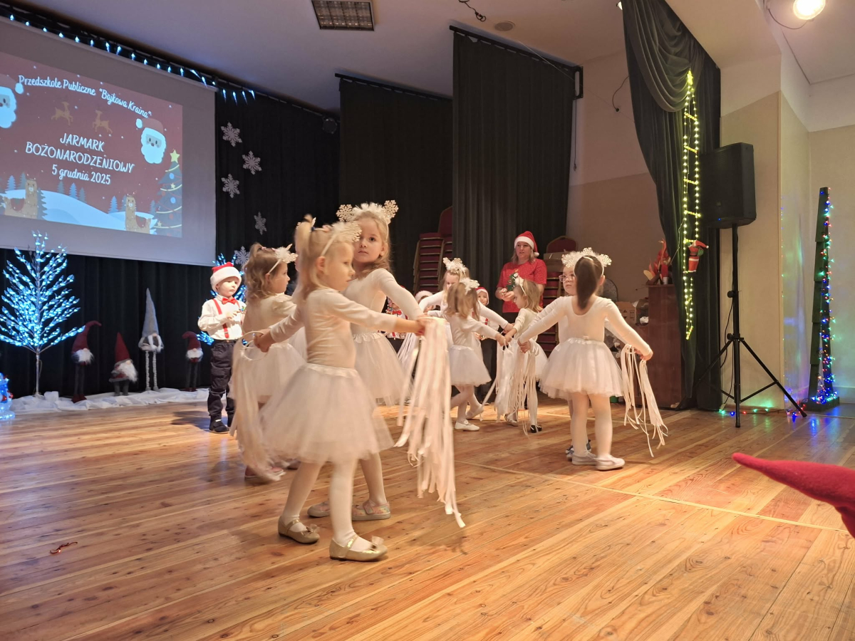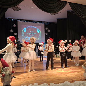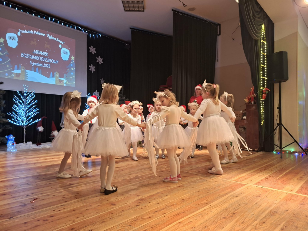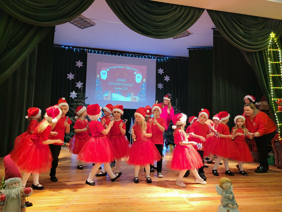 5 grudnia w Gminnym Ośrodku Kultury, już po raz czwarty odbył się Jarmark Bożonarodzeniowy zorganizowanym przez Radę Rodziców naszego przedszkola. Blask lampek, świąteczne piosenki oraz występy naszych przedszkolaków stworzyły prawdziwą magię zbliżającego się wielkimi krokami Bożego Narodzenia. Podczas jarmarku sprzedawane były ozdoby świąteczne i pyszne ciasta upieczone przez rodziców. Takie przedsięwzięcie mogliśmy zoorganizować dzięki współpracy rodziców i pracowników przedszkola. Tego dnia odwiedził nas wyjątkowy gość wyczekiwany przez wszystkie dzieci Święty Mikołaj. Serdecznie dziękujemy wszystkim zaangażowanym rodzicom za pomoc, poświęcony czas i wsparcie.