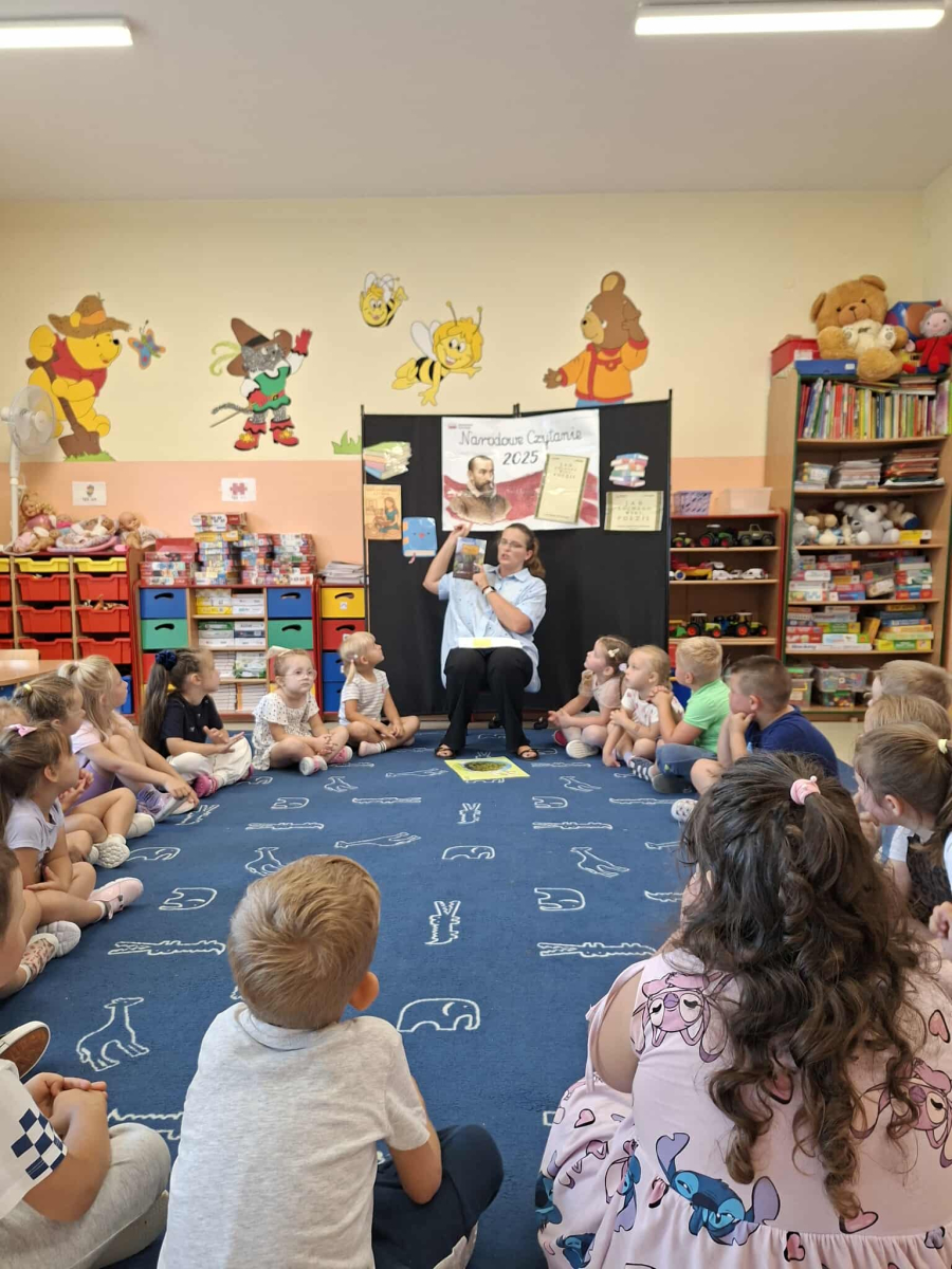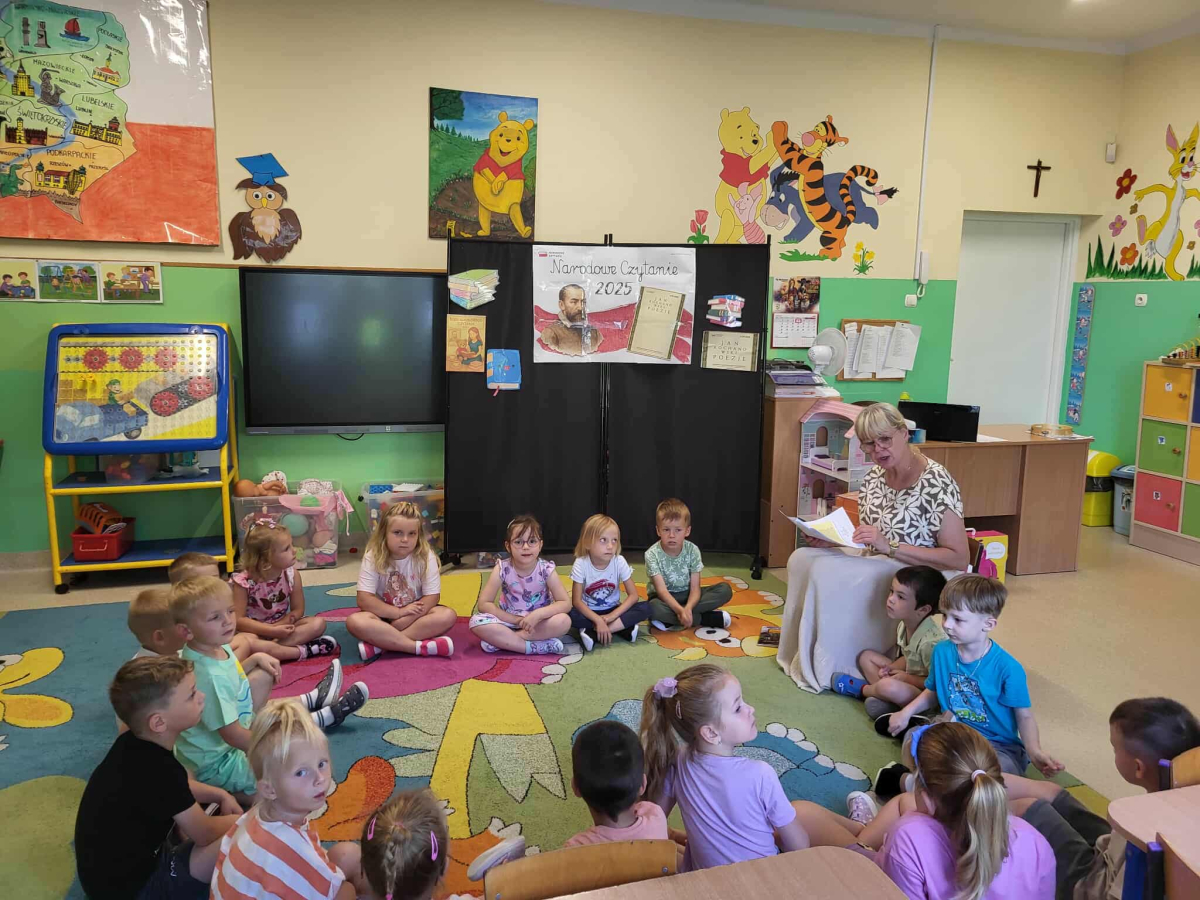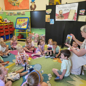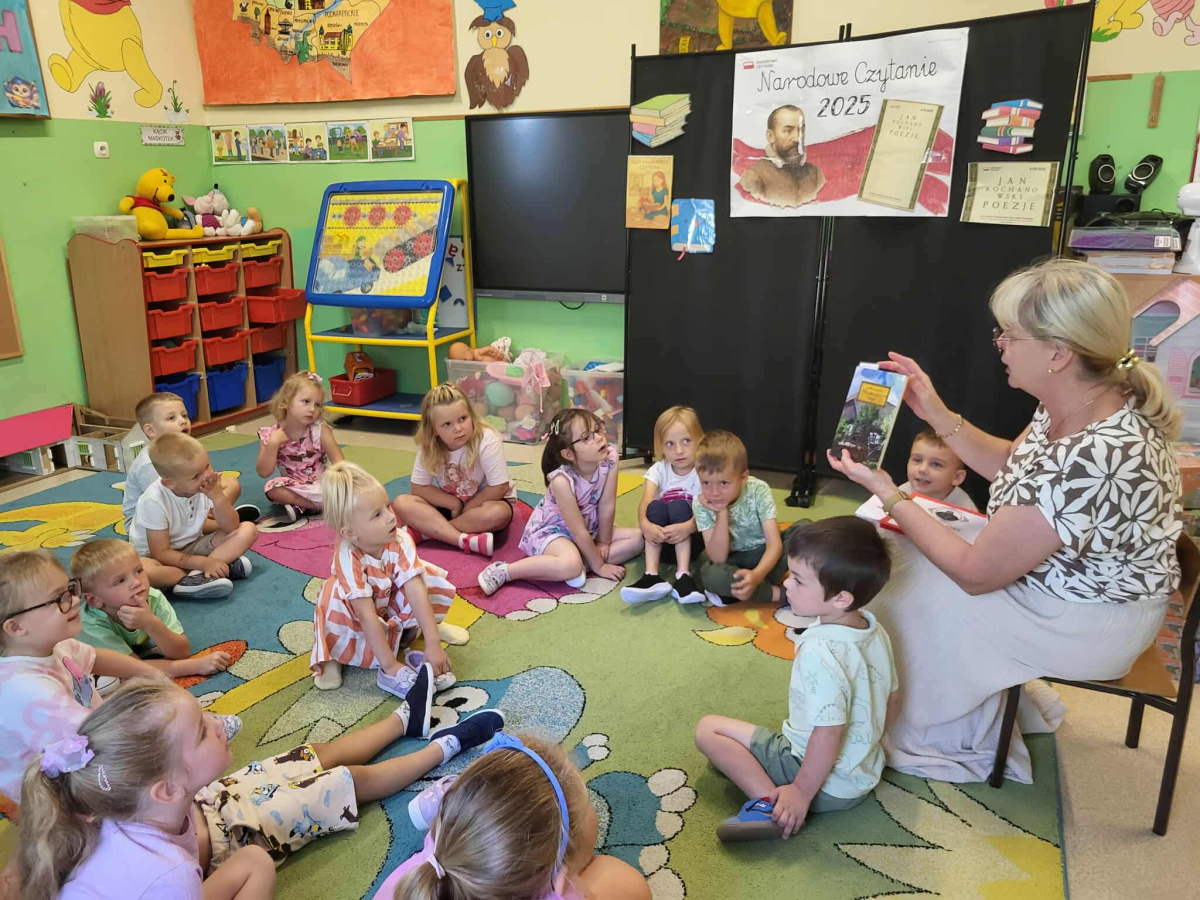 W piątek 5 września w naszym przedszkolu odbyło się wyjątkowe wydarzenie – Narodowe Czytanie 2025. Do wspólnego świętowania włączyły się dzieci z grup starszych, które z dużym zainteresowaniem uczestniczyły w przygotowanych zajęciach. W tym roku dzieci poznały postać Jana Kochanowskiego. Starszaki wysłuchały jego pięknej fraszki „Na lipę”, a następnie porównywały polskie słowa w ich dawnym i współczesnym brzmieniu oraz miały okazję porozmawiać o tym, jakie znaczenie lipa ma w przyrodzie i w kulturze.