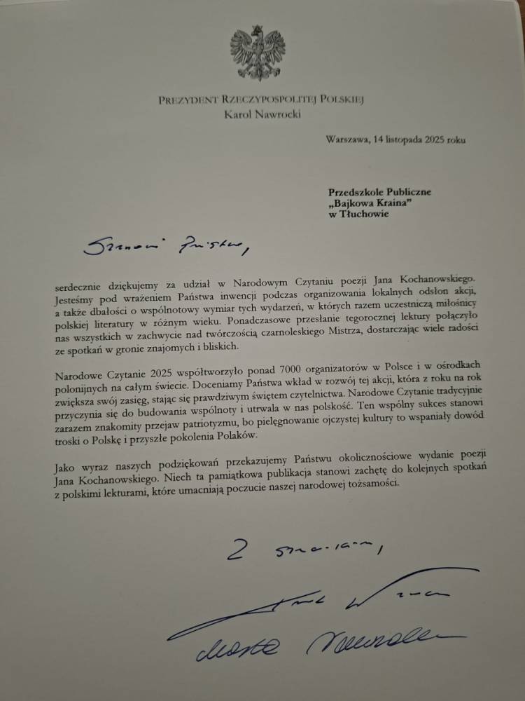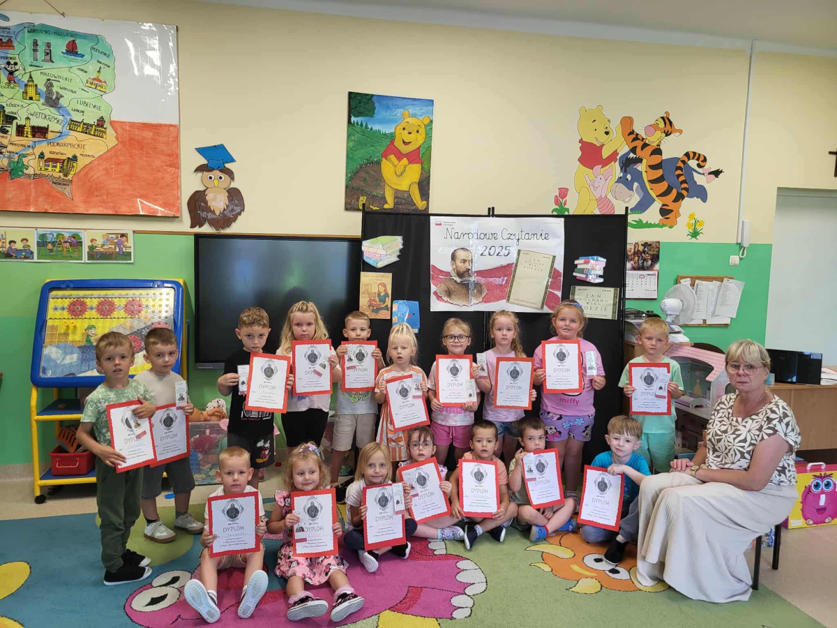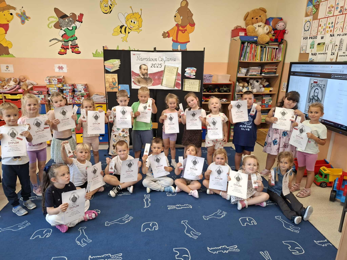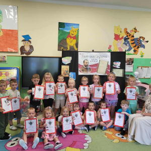 W piątek 5 września w naszym przedszkolu odbyło się wyjątkowe wydarzenie – Narodowe Czytanie 2025. Do wspólnego świętowania włączyły się dzieci z grup starszych, które z dużym zainteresowaniem uczestniczyły w przygotowanych zajęciach. W tym roku dzieci poznały postać Jana Kochanowskiego. Starszaki wysłuchały jego pięknej fraszki „Na lipę”, a następnie porównywały polskie słowa w ich dawnym i współczesnym brzmieniu oraz miały okazję porozmawiać o tym, jakie znaczenie lipa ma w przyrodzie i w kulturze.