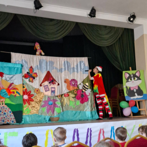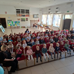 27 marca dzieci z naszego przedszkola oglądały przedstawienie teatralne „Zagubione pisanki” w wykonaniu grupy teatralnej "Magik" z Białegostoku, które przybliżyło dzieciom zwyczaje Świąt Wielkanocnych oraz poruszało tematy wychowawcze kształtujące właściwe zachowanie i kulturę osobistą. Opowieść jest o wielkanocnej krainie, w której trwają intensywne przygotowania do Świąt. Każdy uwija się jak może, by wszystko było przygotowane na czas. Jedynie Kogucik Piotruś zamiast pomagać wszystkim przeszkadza i płata figle. I niestety pewnego dnia dochodzi do nieszczęścia! – wielkanocne pisanki znikają!!! Kto je odnajdzie?
